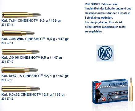 Bezeichnung: | RWS Schießkino Spezial, Kal. 8x57 IS, 12.1 gramm Cineshot Bleifrei Super Clean | |||